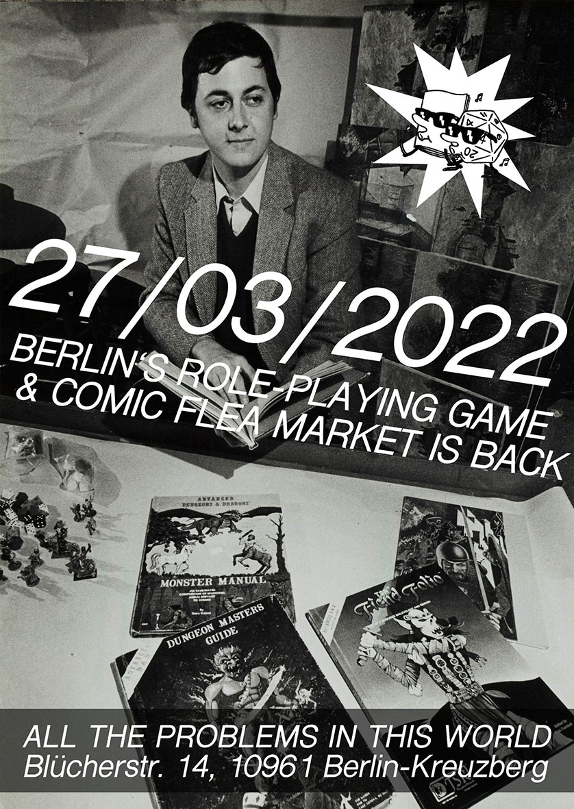 All shelves in the store will be emptied again, and YOU are welcome to fill them to the brim with your (English or German) second hand comics, fantasy role-playing game books and zines, dice, and related collectibles, which you want to sell.